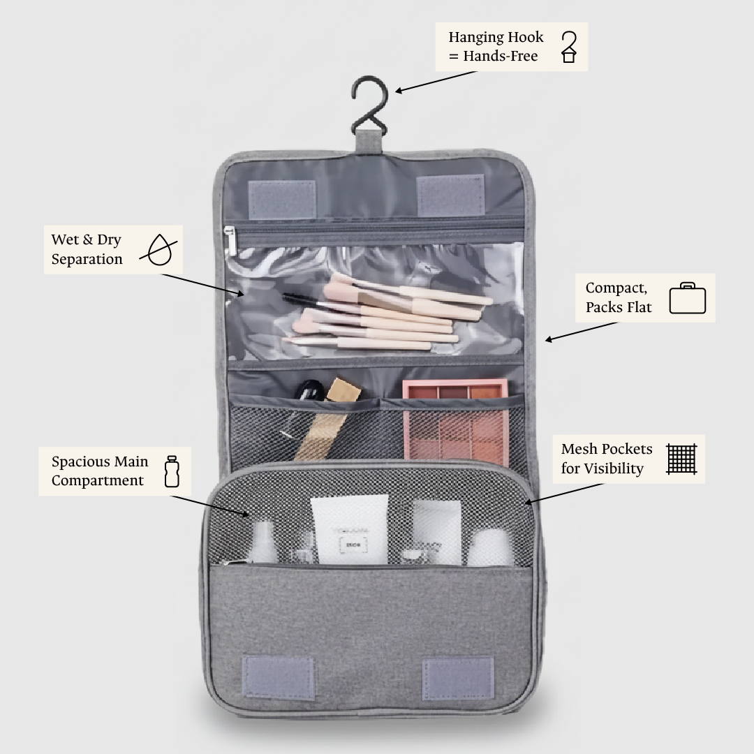 1 × Waterproof pocket (for toothbrush, razor, small liquids)