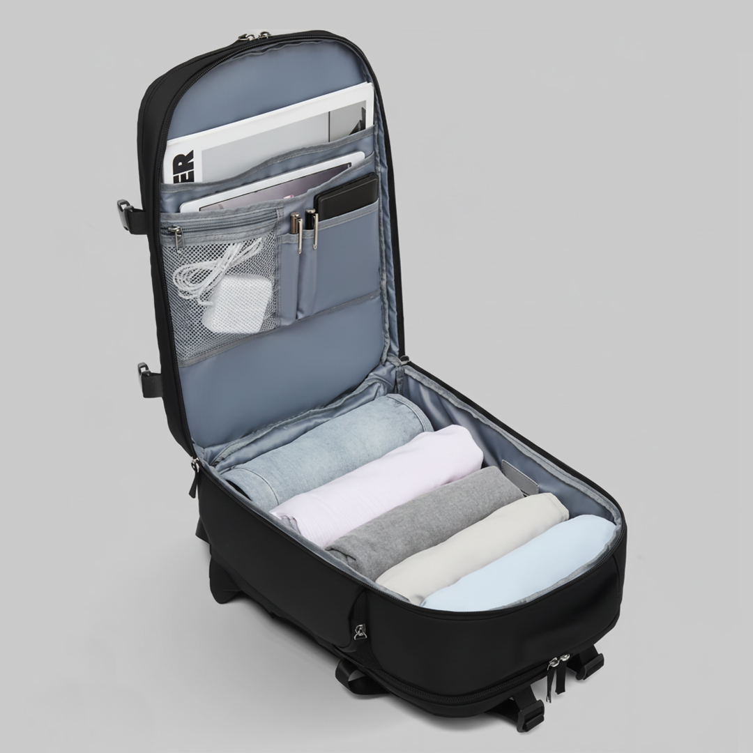 With compartments for clothes, electronics, and toiletries, everything has a place — so you can travel organized, not overloaded.