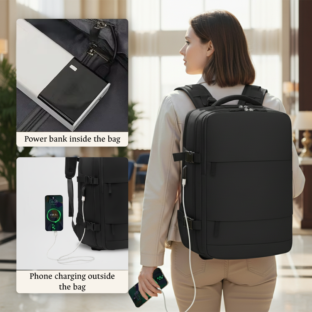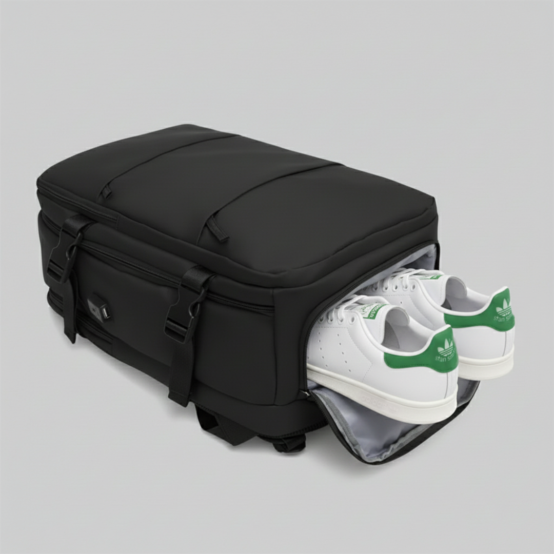 The travel backpack with compartments for shoes, clothes, and electronics — so everything stays organized and ready to go